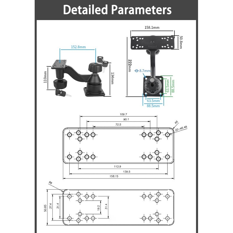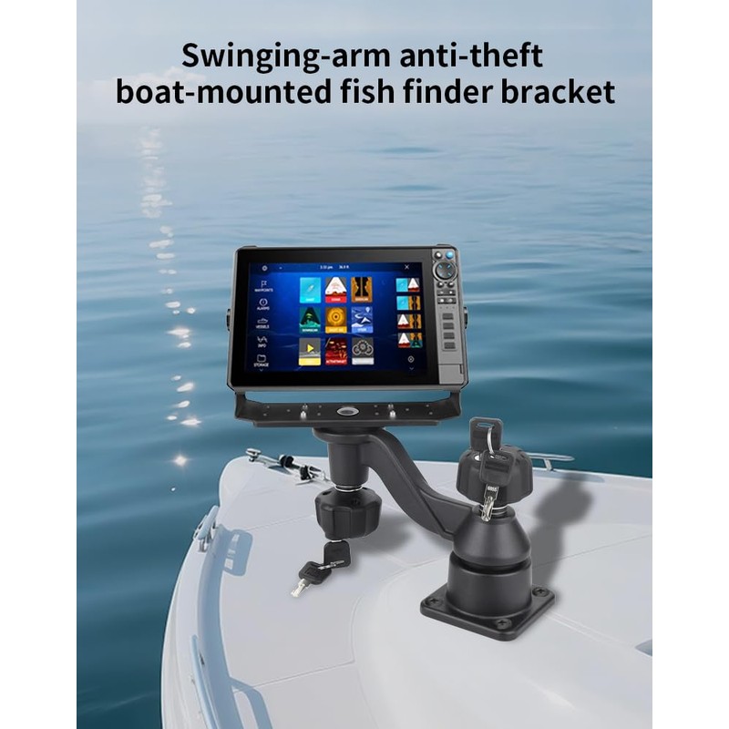 - Fishfinder mount equipped with the newly designed anti-theft knob. After using the key to lock, the knob will only idle and cannot be rotated to adjust or disassemble. After inserting the special key to unlock, you can rotate the knob to adjust the angle or remove the bracket normally.