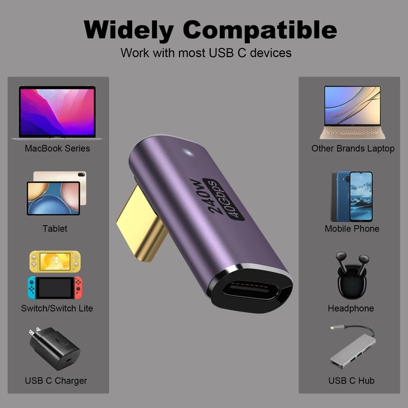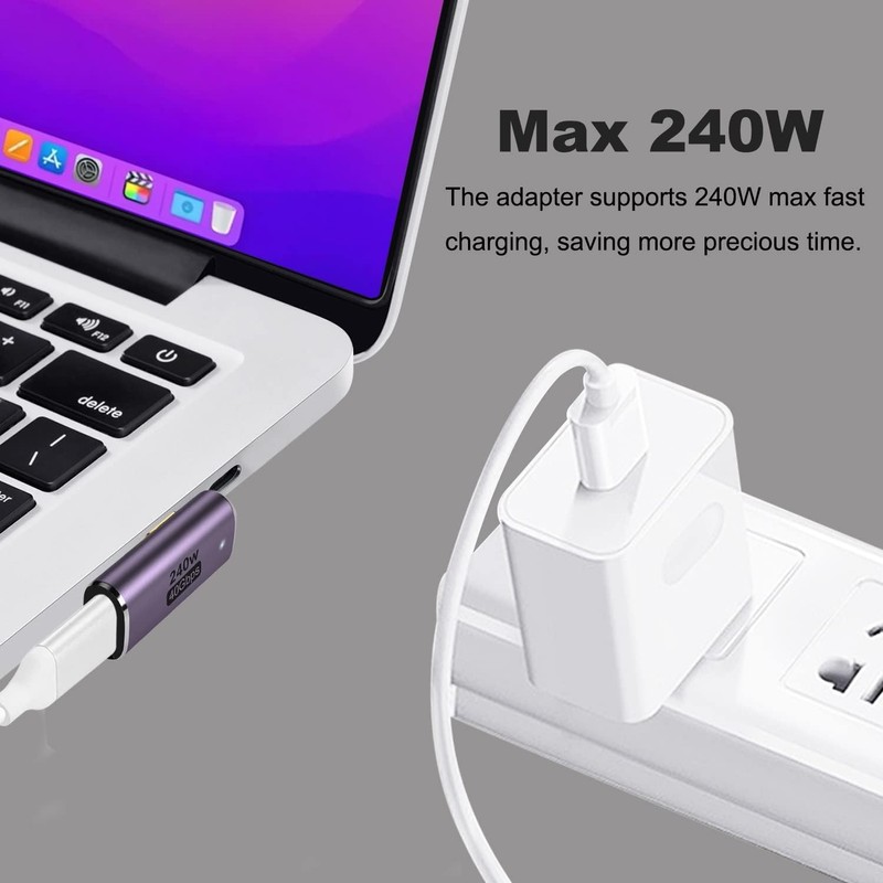 - 「Product power」The USB C adapter can realize the maximum 48V/5A, 240W USB power delivery, providing your device with the fastest possible charging.The USB C adapter meets the USB 4 standard, that is up to 40Gbps data transmission speed. Transfers movies, music and more in just seconds. Please noticed that the data transmission speed also depends on the USB devices and the cable support or not.