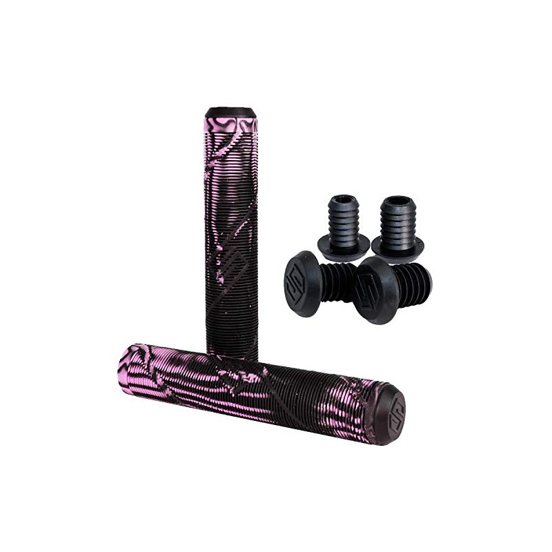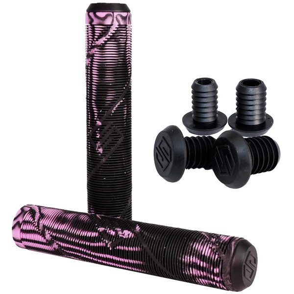 Striker Stunt Scooter / BMX Hand Grips Soft Long + 2 x 2 Bar Ends (Black/Purple)