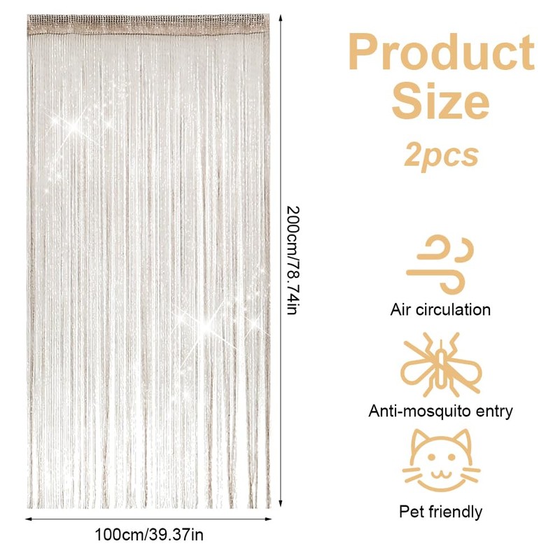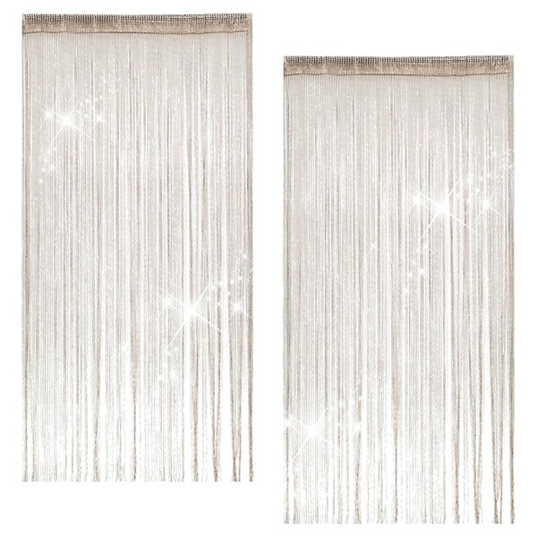 String Curtains Set, 100 x 200 cm Thread Curtain, Glitter, Champagne-Coloured Thread Curtain, Balcony Door, Fly Screen, Room Fringe Curtain, Suitable for Weddings, Cafés, Restaurants, Doors