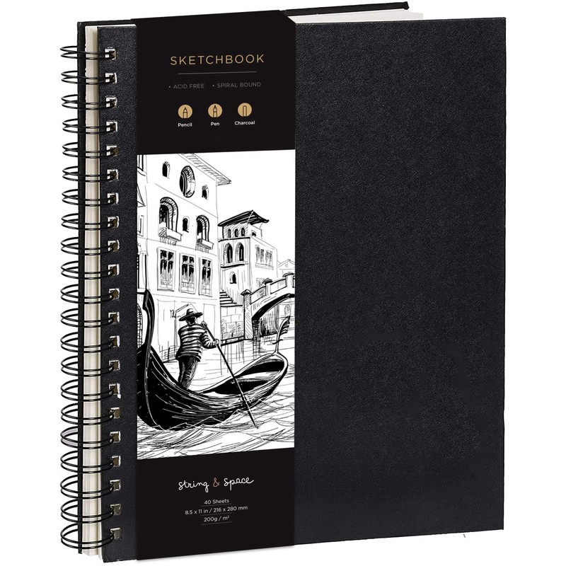 String & Space Artist's Sketchbook Hardcover C 200GSM Very Thick Paper C Large, Spiral Sketch Book for Drawing and Mixed Media C Sketch Pad, Art Book - 8.25 x 11.4, 40 Sheets / 80 Pages