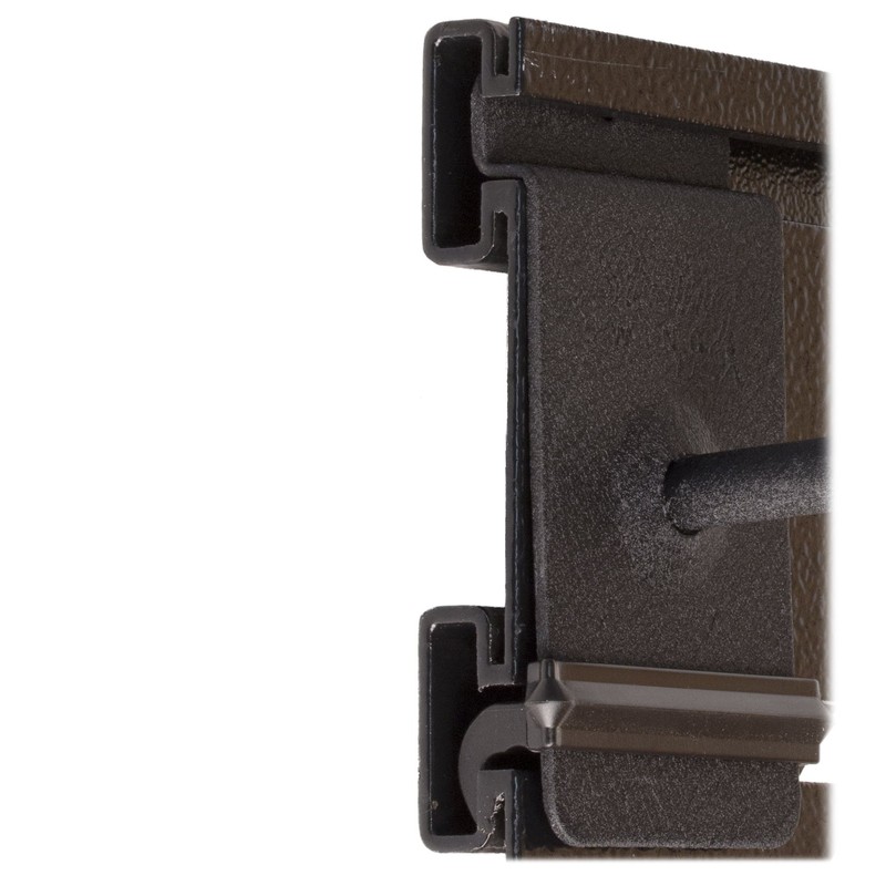 • Constructed of black powder-coated steel and heavy duty rubber. Includes a clip to secure the fixture into the slatwall