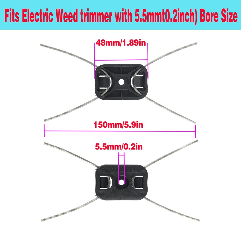 - Easy to Install: It fits electric trimmers with a 5.5 mm (0.2 inch) aperture. It has a small 5.5mm hole in the middle for easy installation. Just need to connect steel wire trimmer head to the shaft punch of the mower, put the screw through the hole in the middle, then use a screwdriver to attach the trimmer head to the lawn mower, it will do the perfect mowing job.
