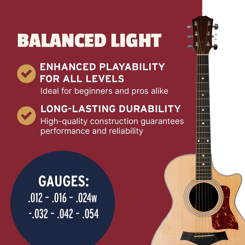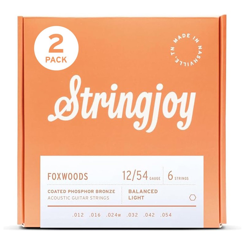 Stringjoy Balanced Light Foxwoods Coated Phosphor Bronze Acoustic Guitar Strings 12-54, FW1254, Long-Lasting Tone and Sound Quality, Acoustic 6 String Set, 2-Pack