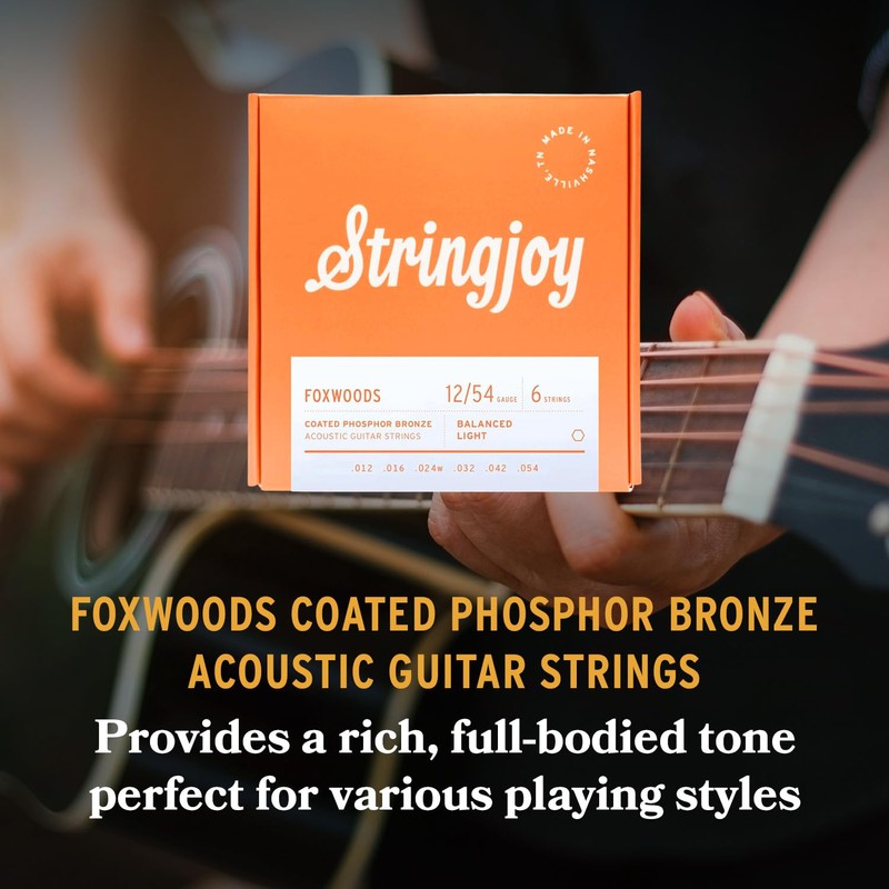 Stringjoy Balanced Light Foxwoods Coated Phosphor Bronze Acoustic Guitar Stri...