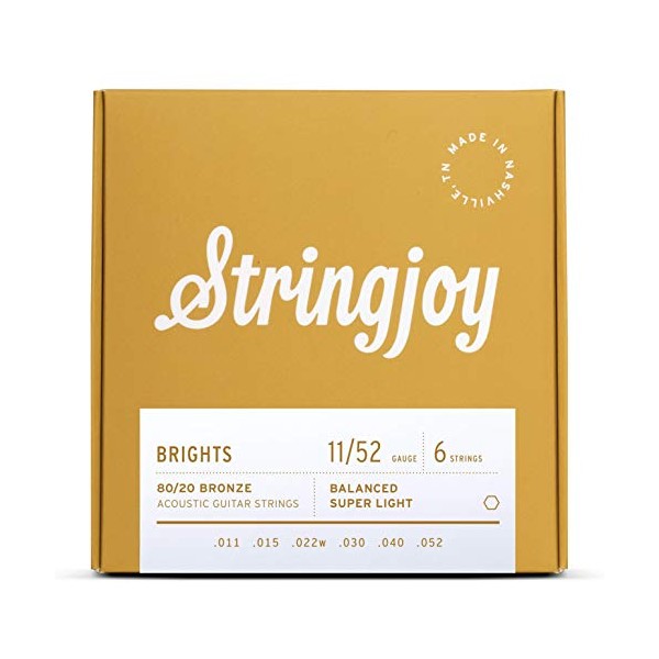 Stringjoy BB1152 Bright Brass Acoustic Guitar Strings, (Super Light Gauge - 11-52)