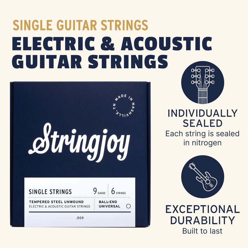 - Exceptional Durability: Built to last, Stringjoy electric and acoustic single guitar strings are crafted from high-quality materials and rigorously tested to withstand rigorous playing; These durable strings reduce the need for frequent replacements, making them a reliable choice for acoustic and electric guitar players