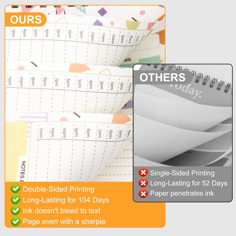 - Stylish and Practical : This to do list features a transparent PP cover to protect the inner pages from dirt and wear, double coil for smootn turning. The back cover is also made of premium quality smooth white paper with chipboard backing to better writing experience. Each notepad contains 52 pages of high-quality, 100gsm paper, which is thick and non-bleeding for a smooth writing experience.