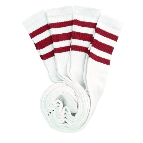 STRIPE TUBE SOCKS - MULTICOLOR 4- PAIRS 22" INCHES LONG WHITE WITH PINK, ROYAL BLUE, RED OR MEDIUM BLUE, (RED)