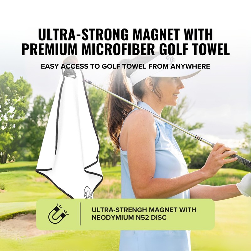 Stripebird - Magnetic Golf Towel (White) - Microfiber Golf Towel with Built-in Ultra-Strong Neodymium Magnetic Towel - 18" x 18" Golf Bag Towel