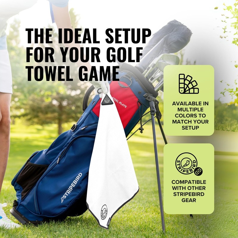 - MAGNETIC CONVENIENCE - Wedge or putter, pick up your towel with ease and convenience on greenside or on fairway. The golf towel magnetic stick onto golf cart, clubs, the Stripebird Golf Hub or the Stripebird Golf Push Cart Mount (SOLD SEPARATELY).