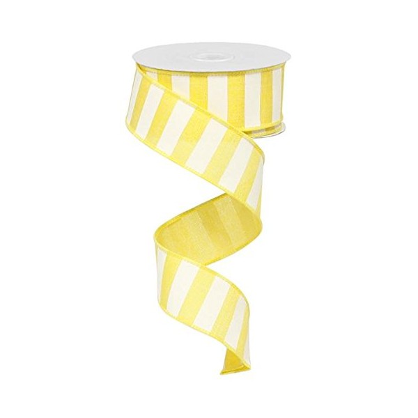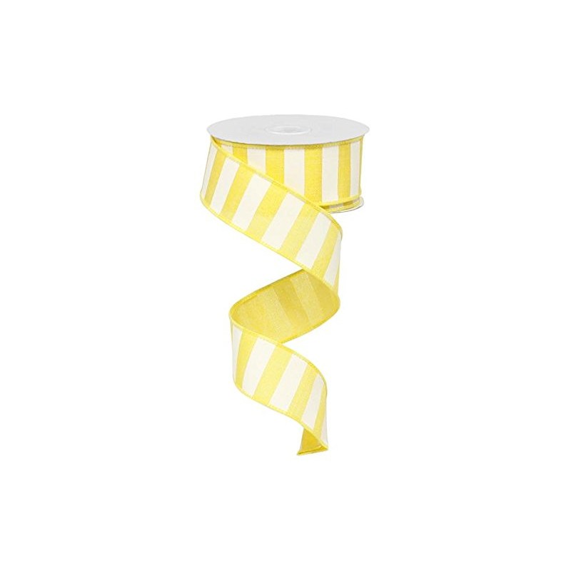 Striped Burlap Wired Ribbon, Yellow and White, 1.5 Inches x 10 Yards) RX9148X7