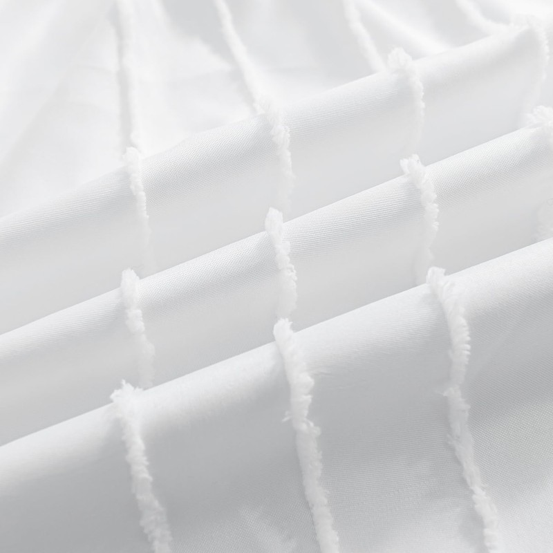 Striped Tufted Bed Skirt Twin Size, Ruffled Bed Skirt with Split Corners, Twin Bed Skirts 22 Inch Drop, White, 22" Twin
