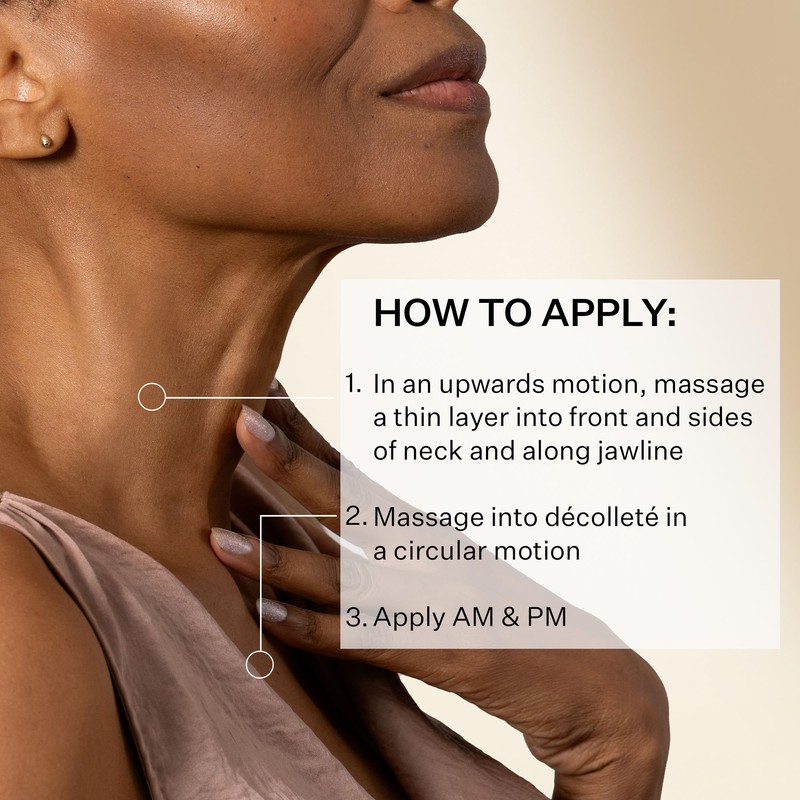 Now upgraded with our most advanced tightening technology and proprietary Alpha-3 Peptide?. Our NEW NECK cream is formulated to visibly tighten, lift, and firm while smoothing horizontal neck lines. Relieves dull, crepey, sagging skin and lines on your neck. Helps to improve neck and sleep lines.