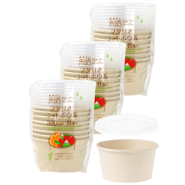 Strix Design SD-157 Disposable Containers with Unbleached Bamboo Lids, 12.8 fl oz (380 ml), Set of 3 of 8 Pieces, Lunch Box with Lid
