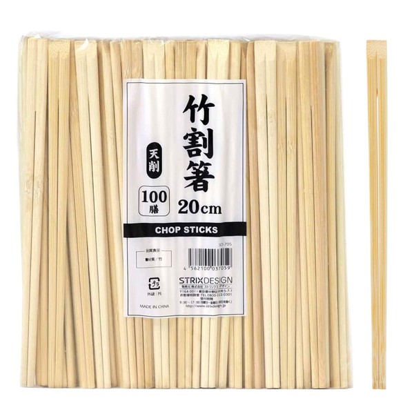 Strix Design SD-705 Split Chopsticks, Bamboo Split Chopsticks, 100 Pairs 7.9 inches (20 cm), Commercial Use, Disposable, Large Capacity, 100 Pieces