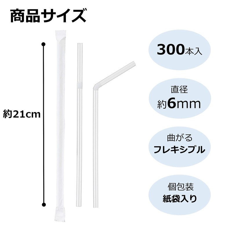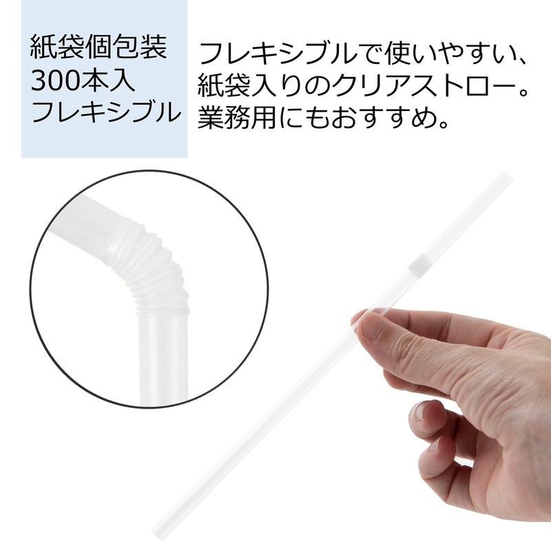 Strix Design Straws MA-817 Paper Bag, Flexible Straws, 300 Pieces, Clear, 8.3 inches (21 cm), Diameter 0.2 inches (6 mm), Commercial Use, Individual Packaging, Hygienic, Flexible