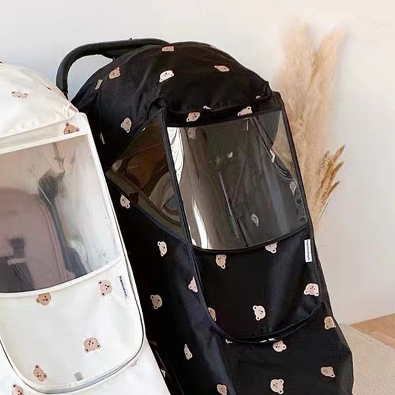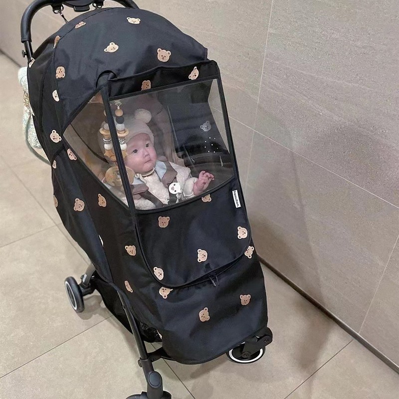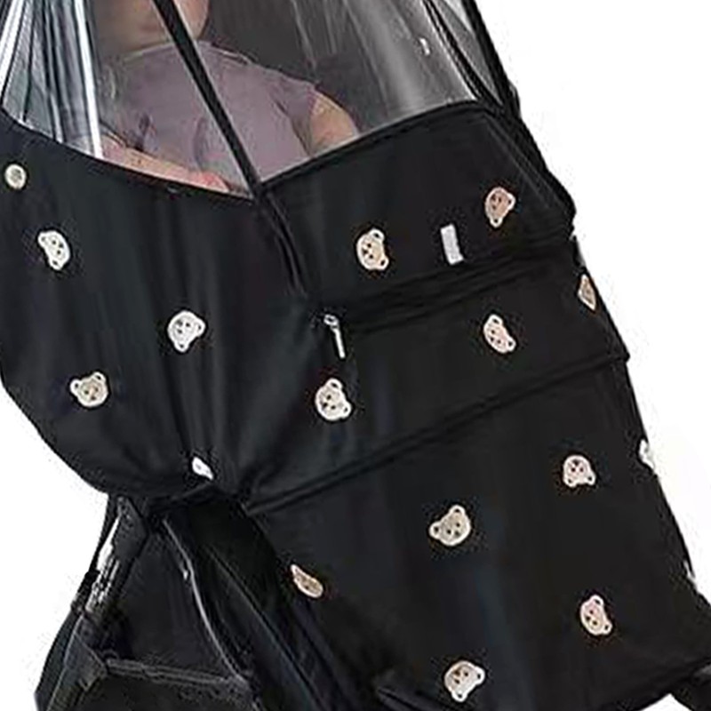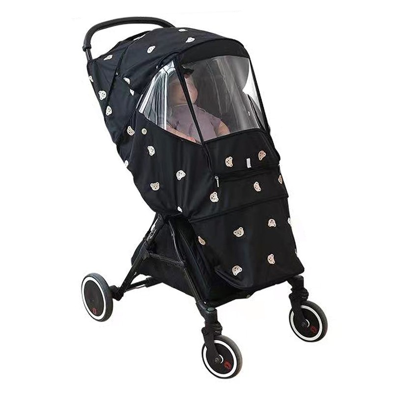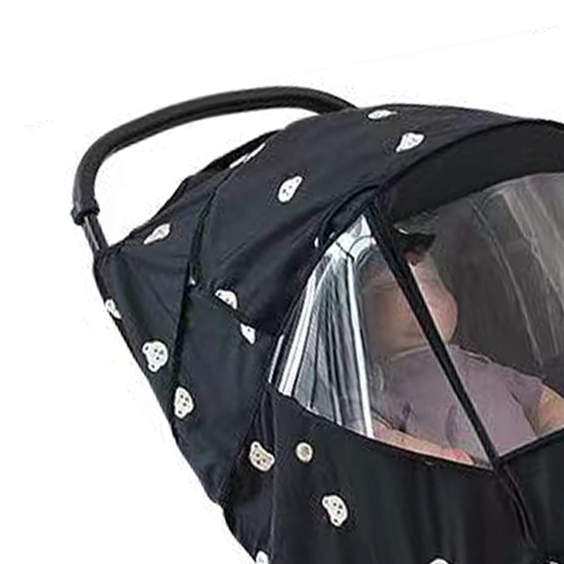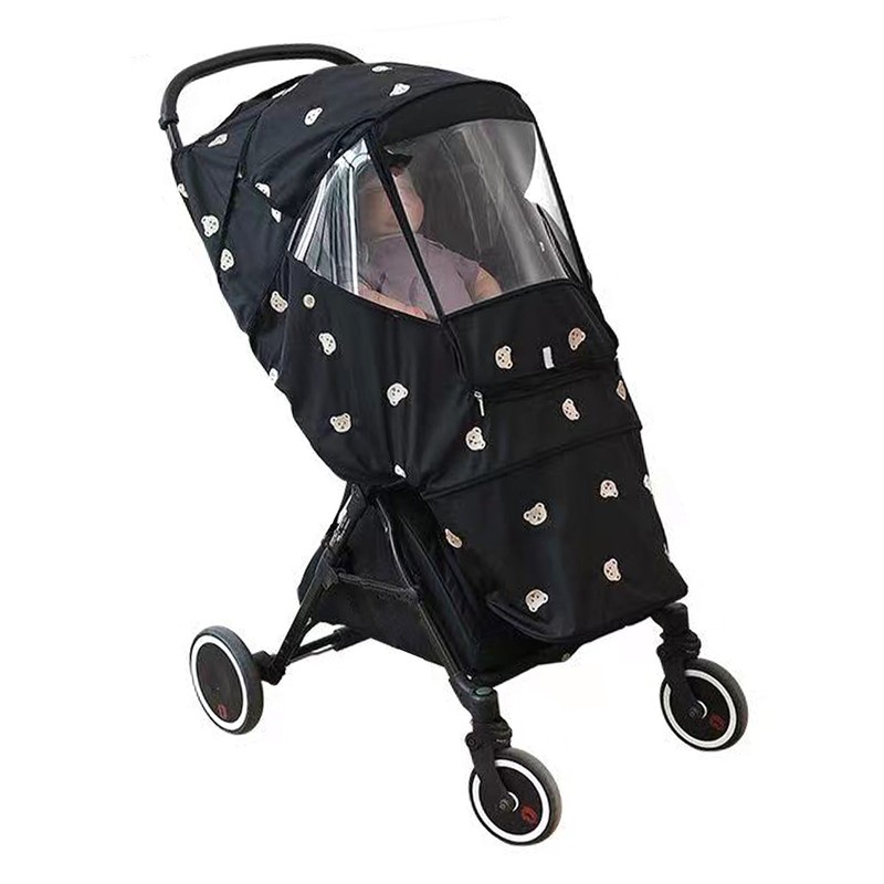 Stroller Rain Cover Windproof Waterproof Cute Bear Pattern Stroller Cover for Outdoor Walking Traveling Black
