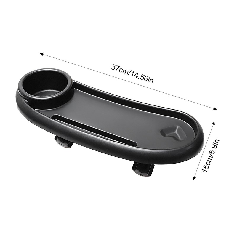Our Snack Tray for Stroller Large Capacity Storage and fits variety of armrest tubes including flat and round s. It's easy to clean with just warm water and accommodates different cup and bottle sizes. parents' hands and enjoy mess- strolling!