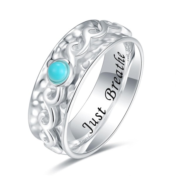 STROLLGIRL Sterling silver Simple spinner ring Fidget band ring spinning meditation anxiety ring (wave and turquoise design, 8)
