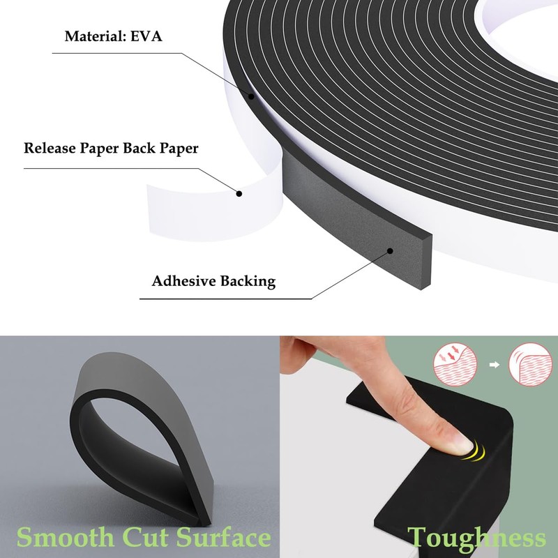 Strong Adhesive Weather Stripping:Cracks and gaps around windows and doors are a leading cause in high-energy costs in your home throughout the year.Strong adhesive foam tape is mainly used to seal and fill gaps in doors and windows, and can effectively prevent the intrusion of wind, rain and wind. Dust-proof and noise-reducing, improving indoor comfort.