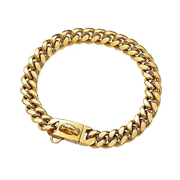 - Material of the gold dog chain collar:High-Quality 316L stainless steel,18K gold plated,which great for Training Dog,and It's very strong so that it can't be pulled apart.