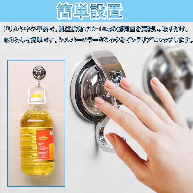 - 【Easy Installation】 Includes 2 hanging hooks. No drilling or screws required, vacuum technology allows for a load capacity of 22.0 - 33.1 lbs (10 - 15 kg). Easy to install and remove. The silver color matches your chic decor
