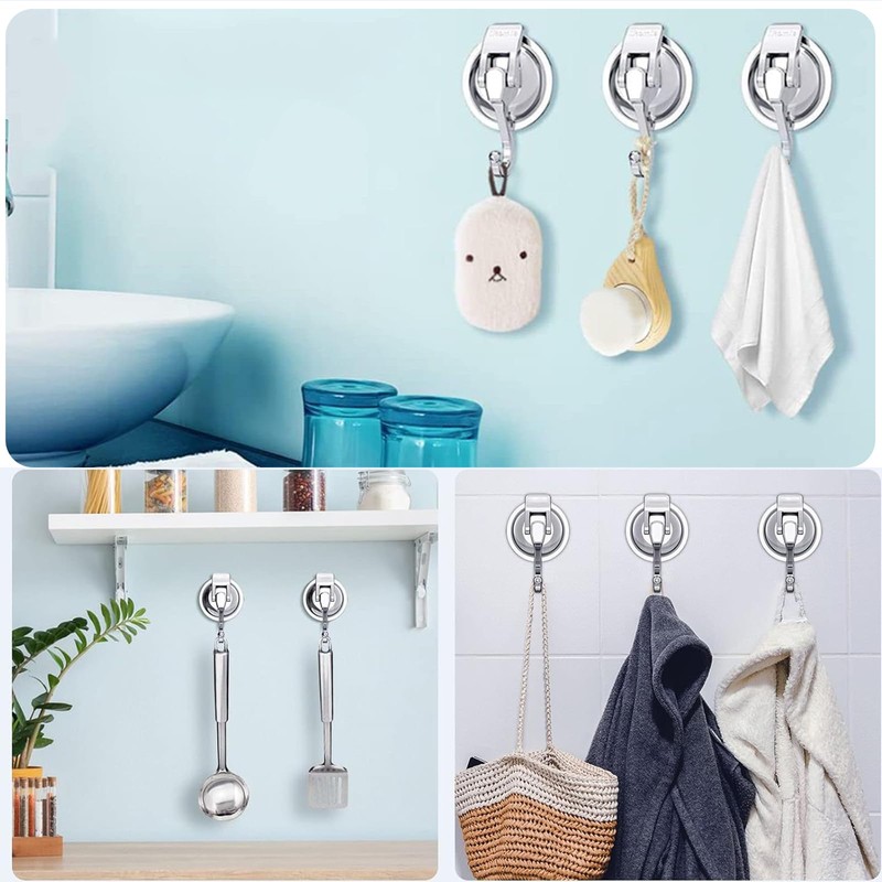 - 【Removable & Reusable】 Suction cup hook is easy to remove and reuse. Easy to use in the bathroom or kitchen and can be adjusted to your desired angle with 360 degree rotation. Ideal for apartments and rental homes