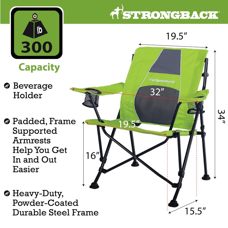 STRONGBACK Camping Chair Guru 3.0 Heavy Duty Camping Chairs with Lumbar Support, Backpack Folding Camp Chair, Lime Green/Gray