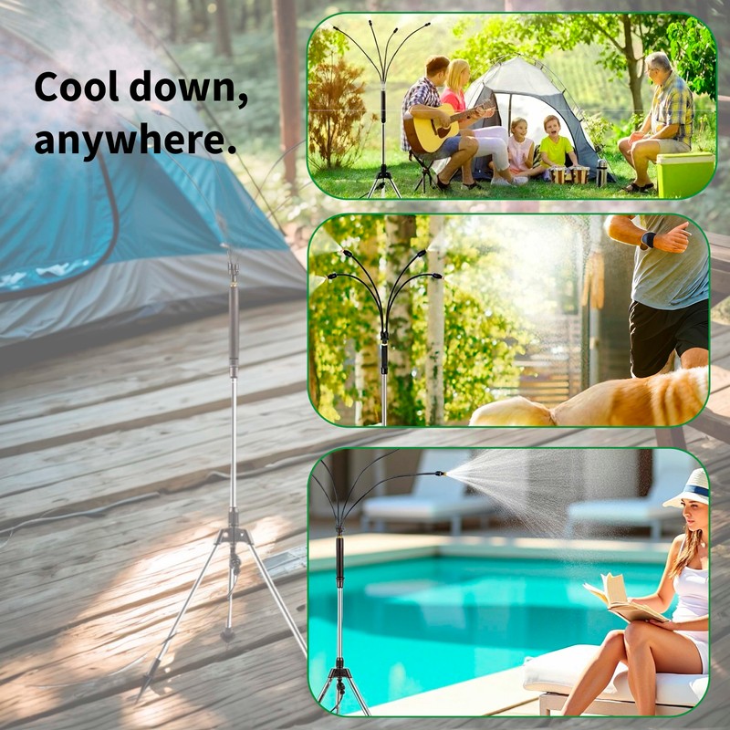 - 【Instant Heat Relief】5-nozzle misting array creates cooling micro-droplets ideal for outdoor dining, poolside relaxation, kids' play areas, and summer gatherings.