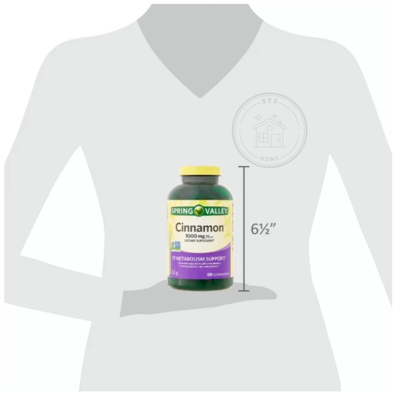 STS Home Spring Valley Cinnamon Dietary Supplement, 1000 mg, 400 Count + STS Sticker.