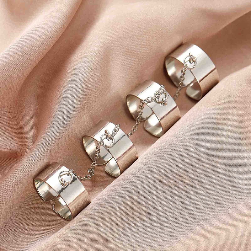Sttiafay Punk Chain Finger Rings Stackable Open Cuff Rings Gothic Ankle Link Chain Rings Set for Women or Men, Metal
