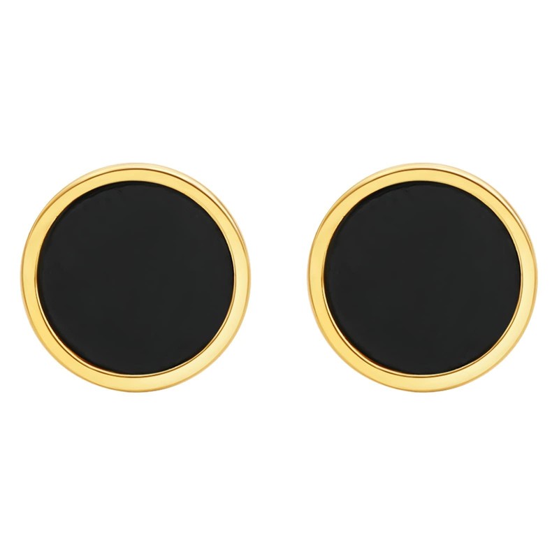 Stud Earrings Black Agate 18CT Gold Plated Studs Sterling Silver Earrings Hypoallergenic Black Onyx Stone Round Circle Earring Studs Jewellery 6-12mm for Women Men Couple Anniversary Birthday