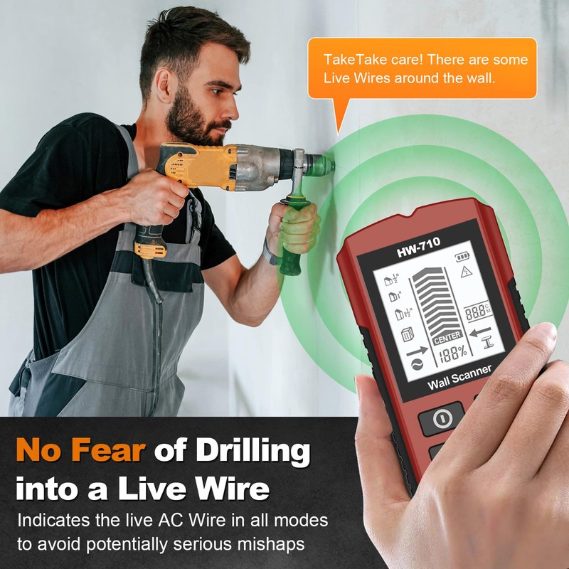 The AC Wire Mode warns you of wires in the wall in advance, avoiding electric shock while drilling.