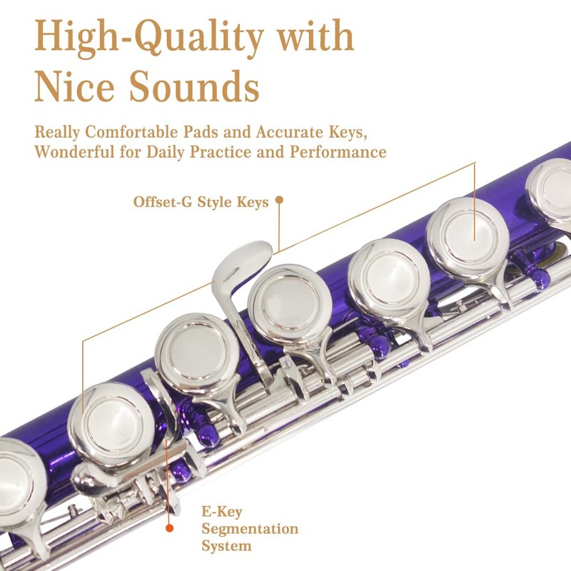 Student C Flute 16 Closed Hole C Flute with Carrying Case Stand Gloves Cleaning Cloth and More(Purple)