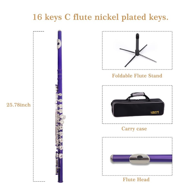 • YANASON Student C Flute 16 Closed Hole C Flute with Carrying Case Stand Gloves Cleaning Cloth and More