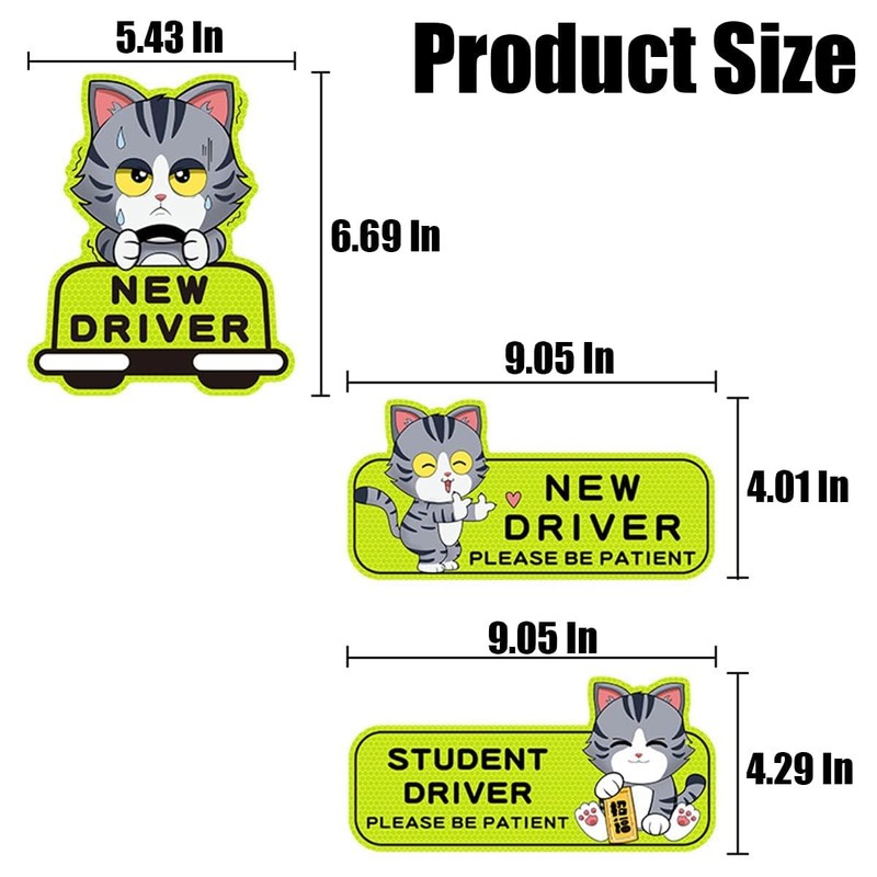 - 【Safe Driving】: Reflective stickers and bold font can easily attract the attention of surrounding drivers, inform them of your status as a new driver, get more space and tolerance, reduce annoying horns, and remind them to control the speed to some extent to avoid accidents.