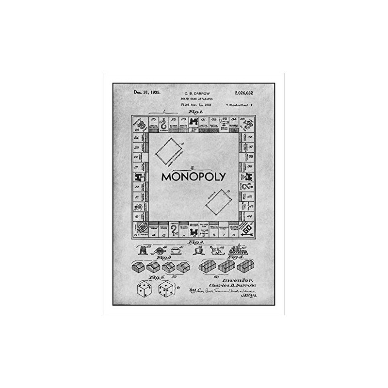 Studio 21 Graphix 1935 Monopoly Board Game Patent Print Art Poster UNFRAMED Gray 18" X 24"