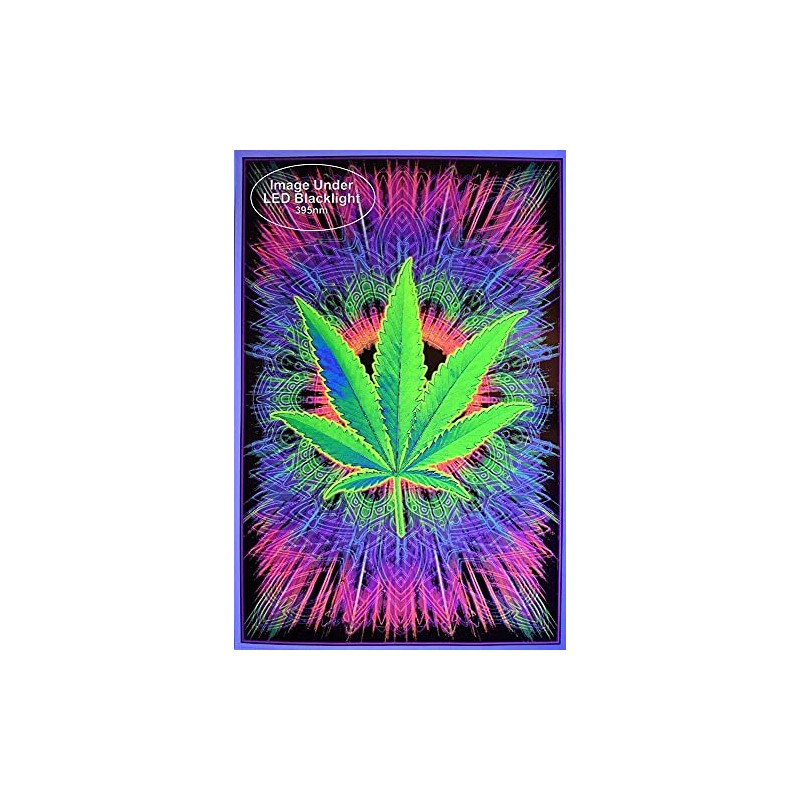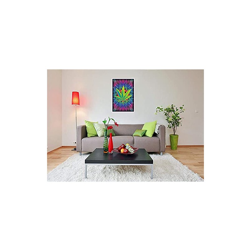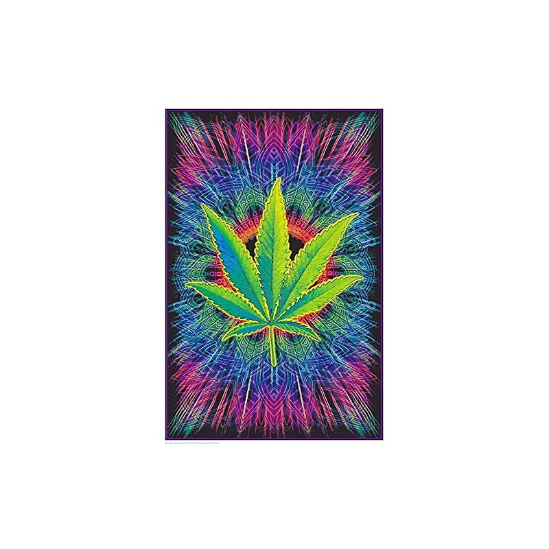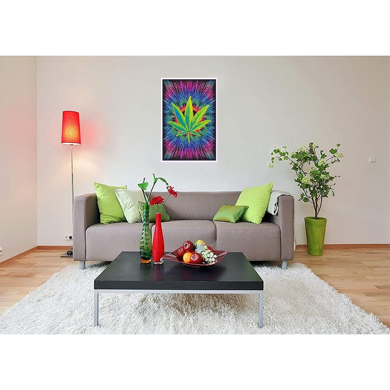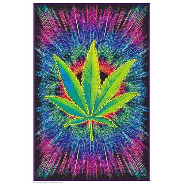- Sized 24" x 36" to Complement Any Room: This poster of a cannabis leaf is perfect for lightening the mood, giving any room a good times vibe in normal light, or a magical glowing touch under a blacklight.
