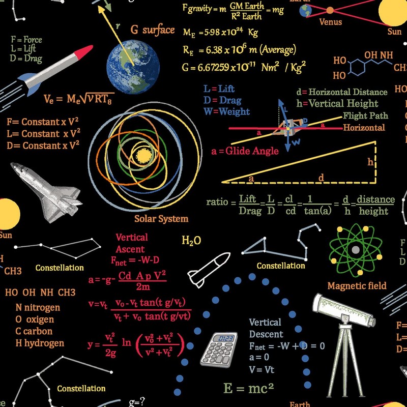 Studio E Fabrics Planetary Missions Graphics & Formulas Multicolor Premium Quality 100% Cotton Fabric by The Yard.