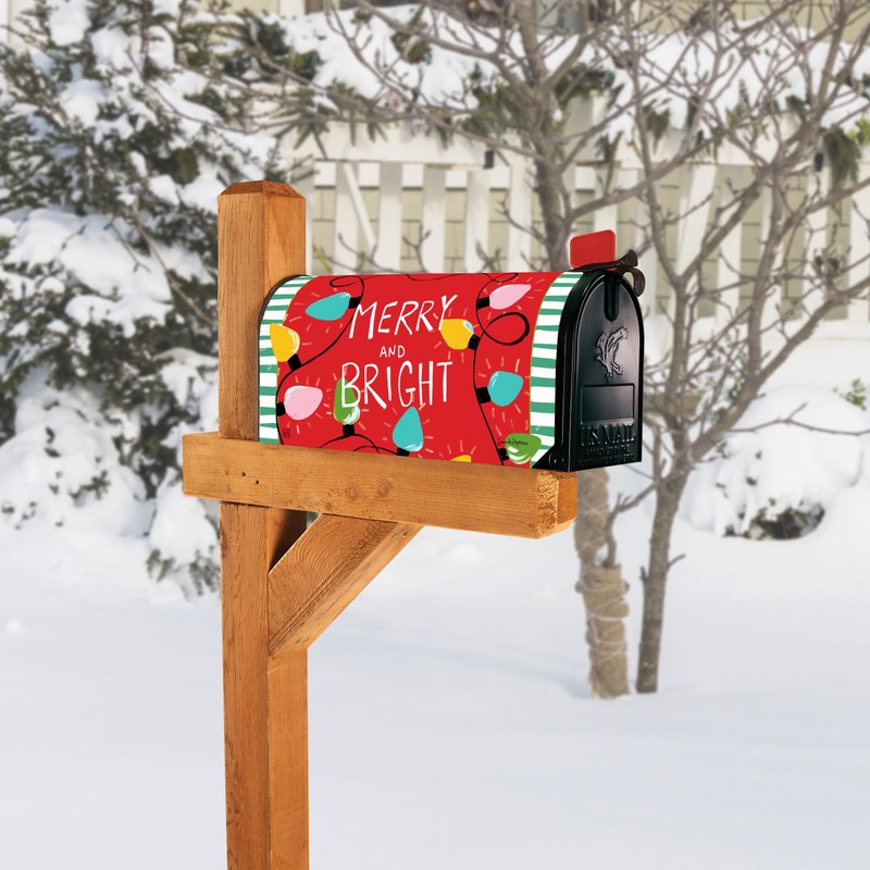 Studio M Decorative Christmas Holiday MailWrap Fits Standard Size 6.5 x 19 Inch Mailbox Weather Resistant Vinyl Red Merry and Bright