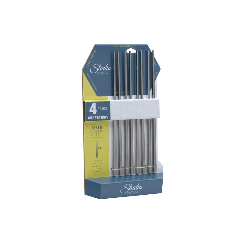 Studio Nova Stainless Steel Chopstick Set, 4-Pair, Silver