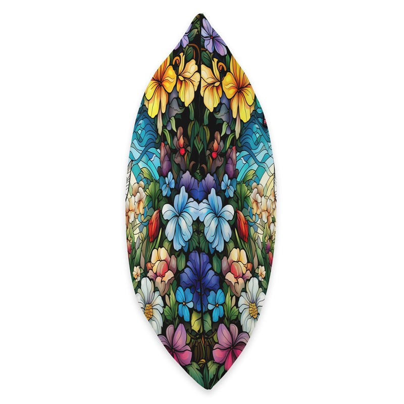 - Beautiful illustration of a stained glass church window depicting a Christian cross and flowers.