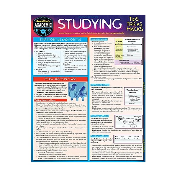 Studying Tips, Tricks & Hacks: Quickstudy Laminated Reference Guide to Grade Boosting Techniques (Quickstudy Academic)