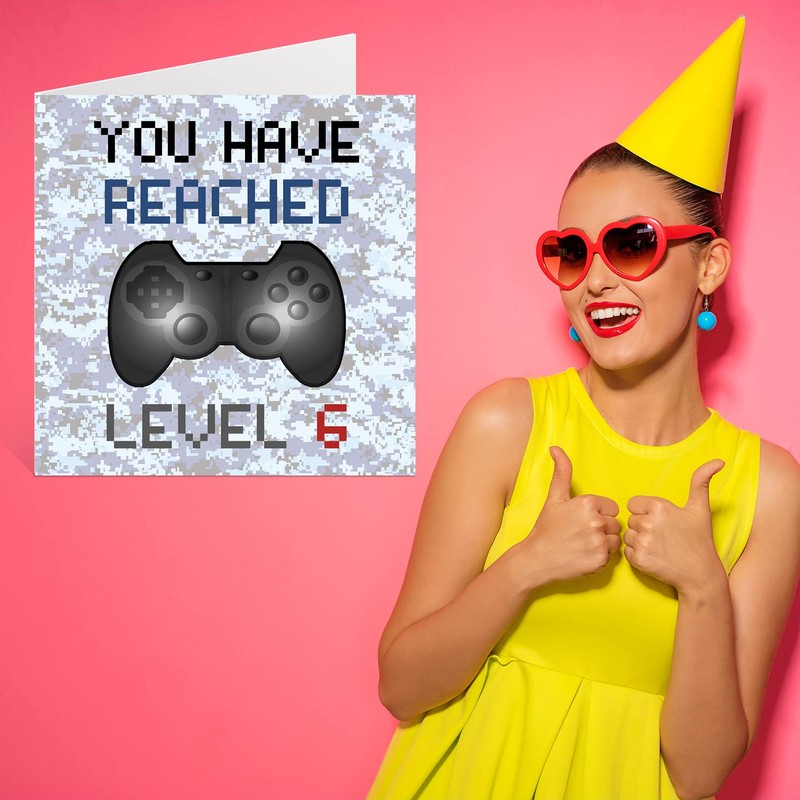 - Fun & Engaging Gamer-Themed Design - Delight the gamer in your life with the "You Have Reached Level 6" design, perfect for any birthday celebration. This card is ideal for sons, daughters, nephews, and friends who love video games, combining humor with a memorable, visually striking message.