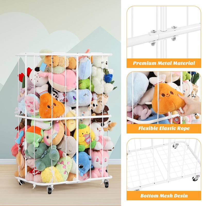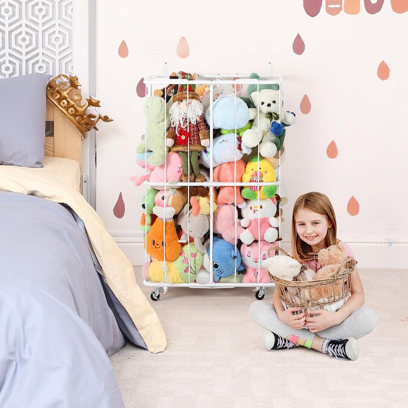 - 【Robust & Enduring】: Crafted from premium metal material, OYEAL rolling stuffed animal storage organizer provides outstanding load-bearing capacity and extended lifespan, keeping toys out of reach of children while remaining easily accessible.