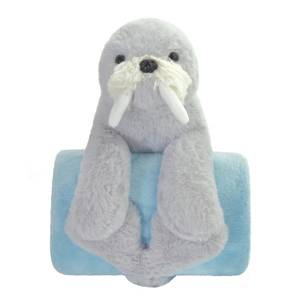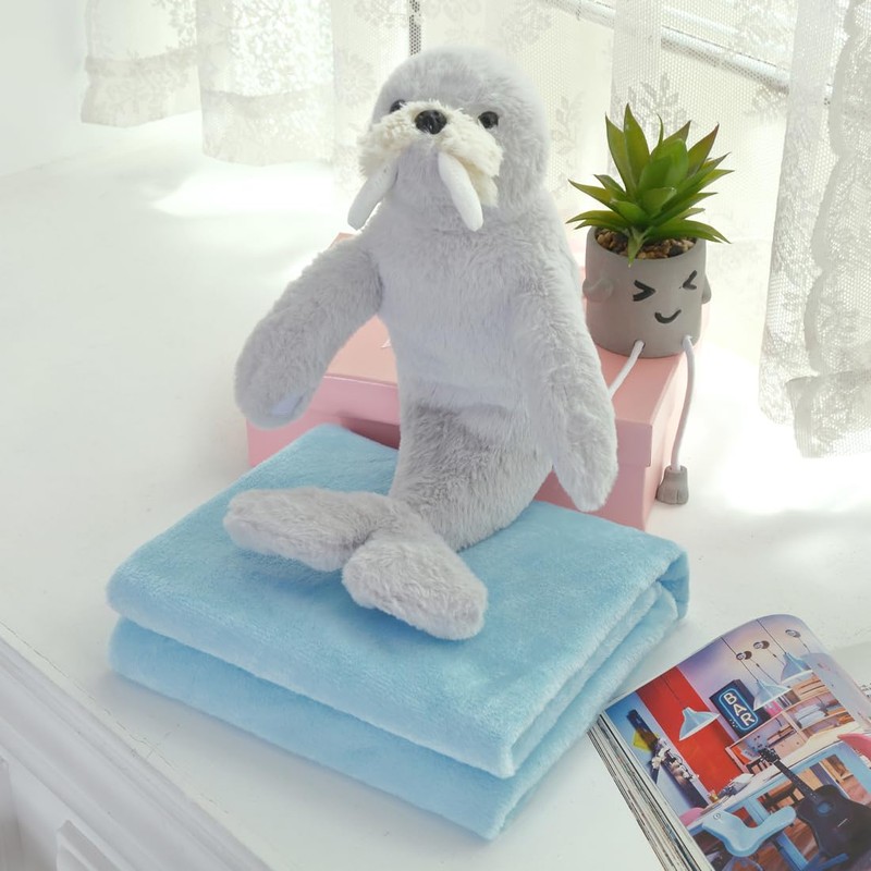 Stuffed Animal Toy and Blanket Set, Sea Lion Plush Toy and Cozy Throw Blanket Combo, for Kids or Girlfriends on Birthdays and Festivals, Snuggle Pet & Comfort Sleeping Toy (Seal Grey)