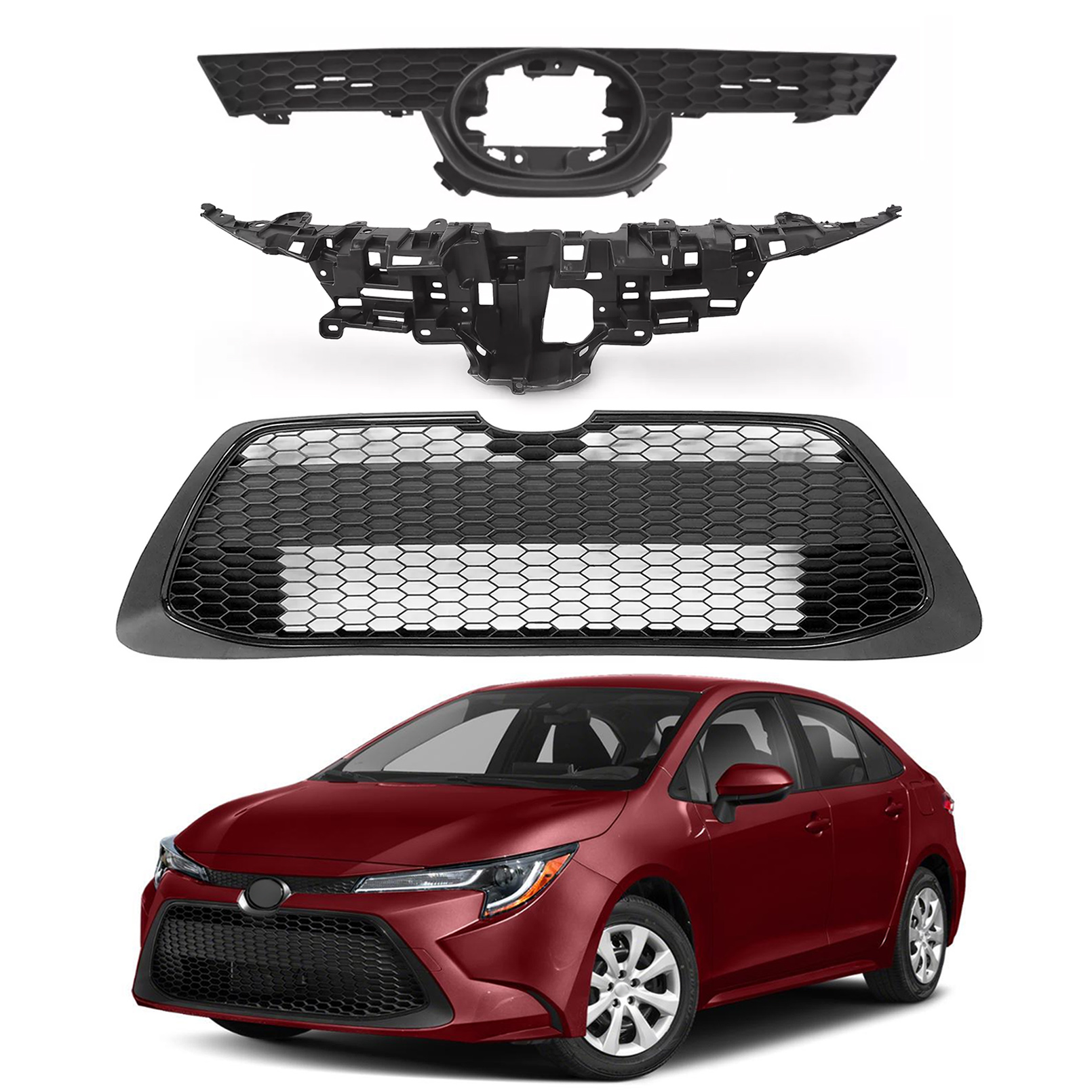 Stunning 3pcs Upper&Lower Grill+Bracket For 2020-2022 Toyota Corolla LE XLE Front Bumper