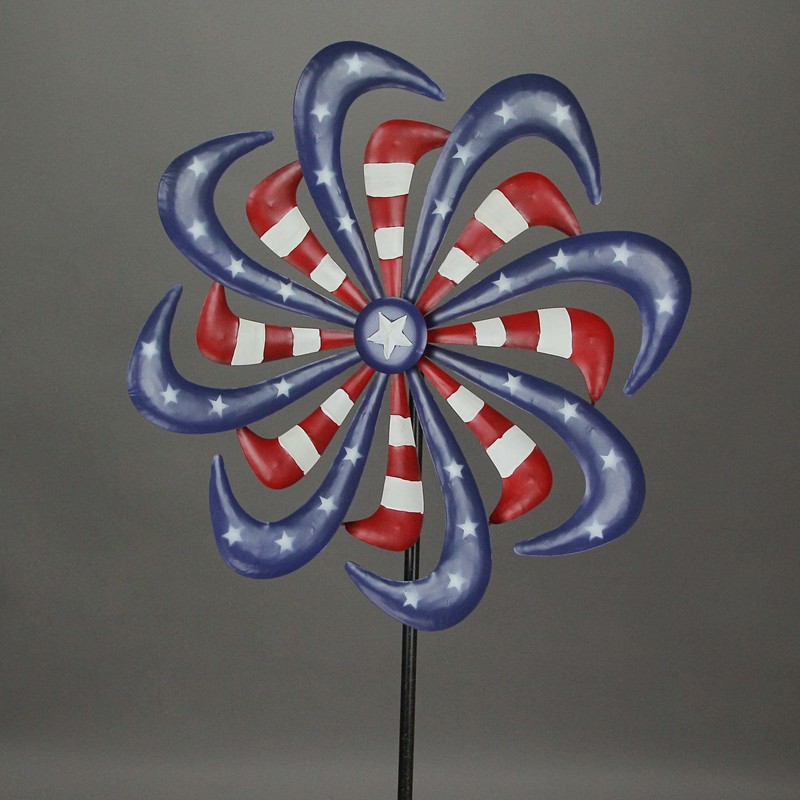 Stunning 63-Inch High Red, White & Blue Stars and Stripes Metal Pinwheel Wind Spinner - A Mesmerizing Outdoor Decor to Transform Your Space into a Patriotic Haven