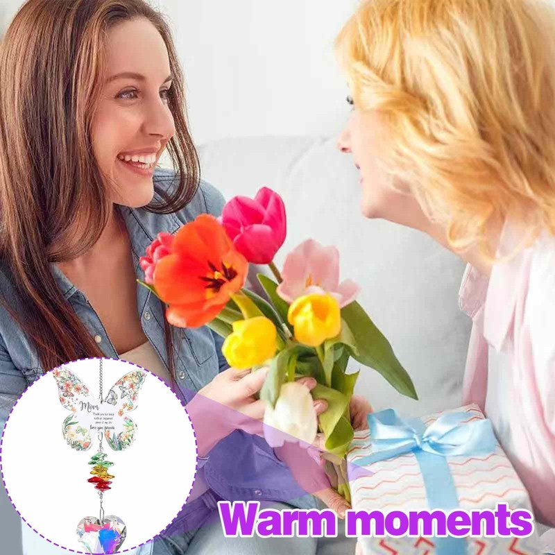 - Expressive Butterfly Suncatcher: Finding the right words to express appreciation and love for moms can be challenging. This unique token for mom communicates volumes without uttering a word. The significance of this butterfly suncatcher will express your love in ways words cannot capture. It is the ideal aid to express your heartfelt feelings- making meaningful presents for Mother's Day, mom's birthday, or just a token of love from a daughter or son.